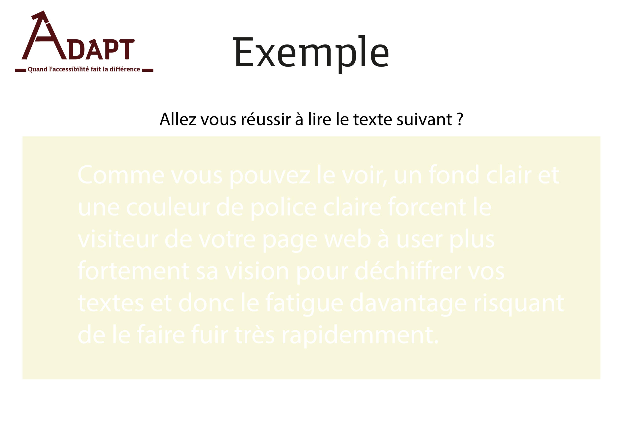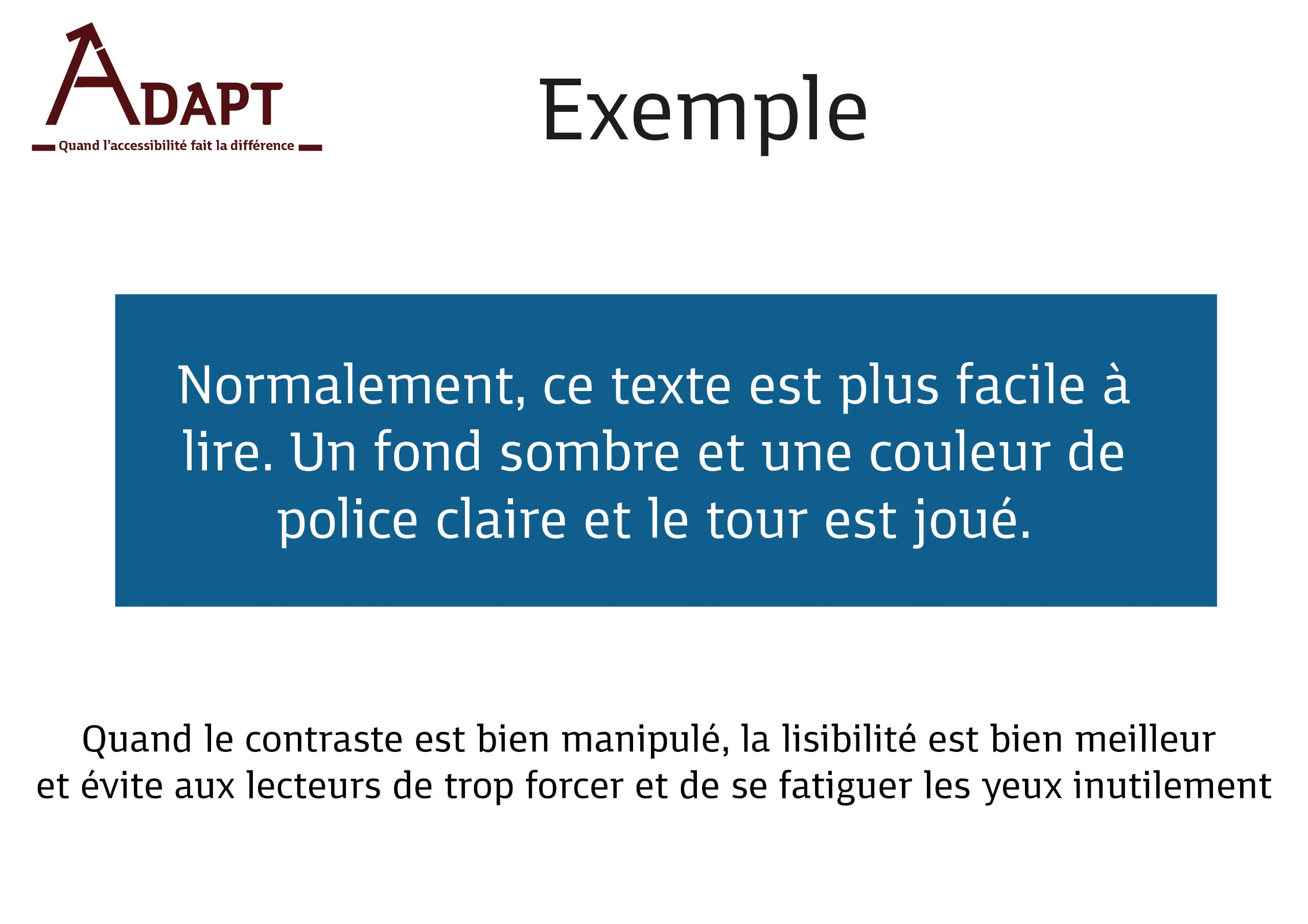 J'ai fait une partie sur le contraste et le ratio à adopter pour une meilleure accessibilité.